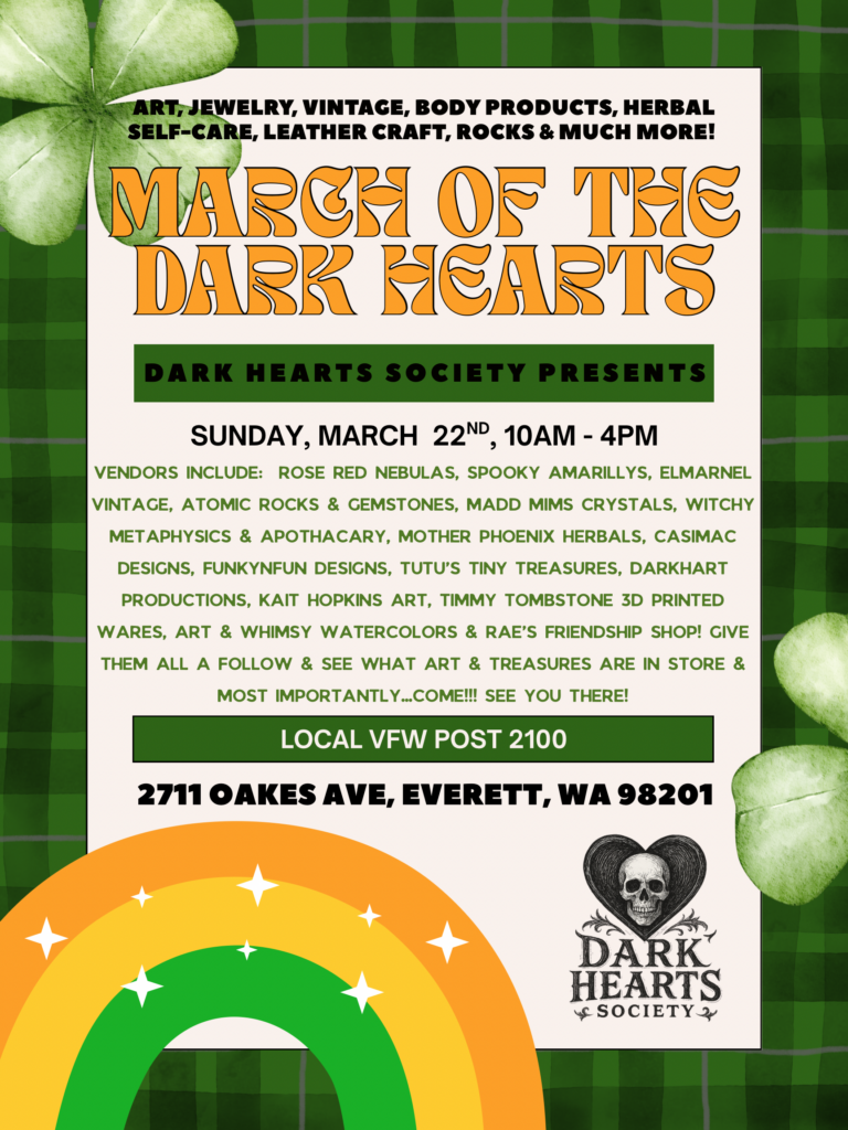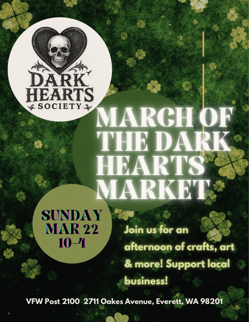 This will be another market hosted by the VFW post 2100, and organized by the Dark Hearts Society. The event begins at 10am and will end at 4pm on Sunday March 22.